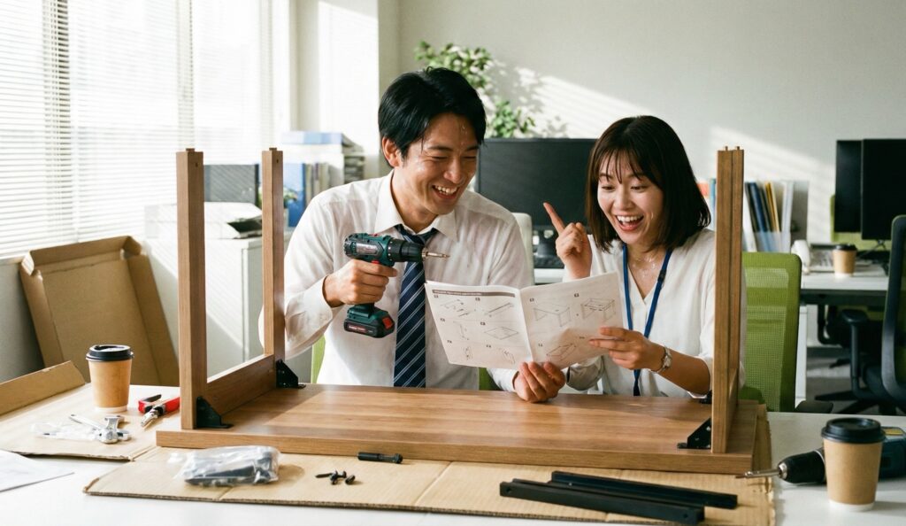 「組み立てがとにかく大変だった。電動ドライバーがないと手が痛くなる。女性一人だとデスクの組み立ては厳しいかも。」(30代・女性)