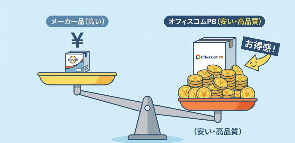 • オフィスコム: とにかくコスパ重視。PB商品で安く揃えたいなら最強。