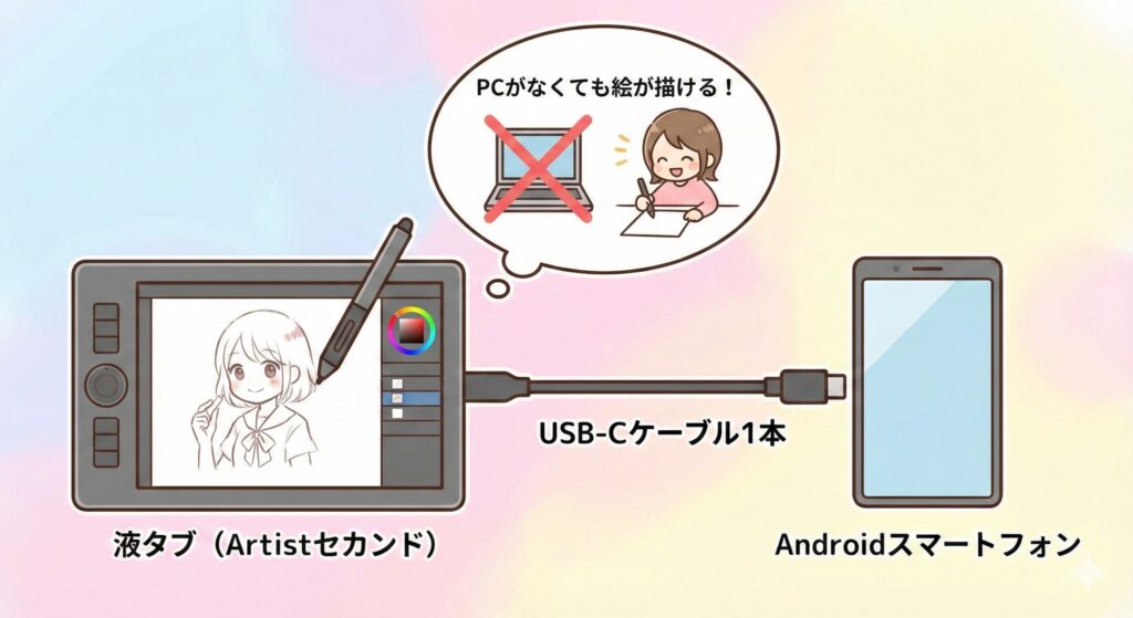 - 理由:多くのモデルがAndroid対応。PCを持っていなくても、スマホに繋ぐだけでお絵描き環境が整います。