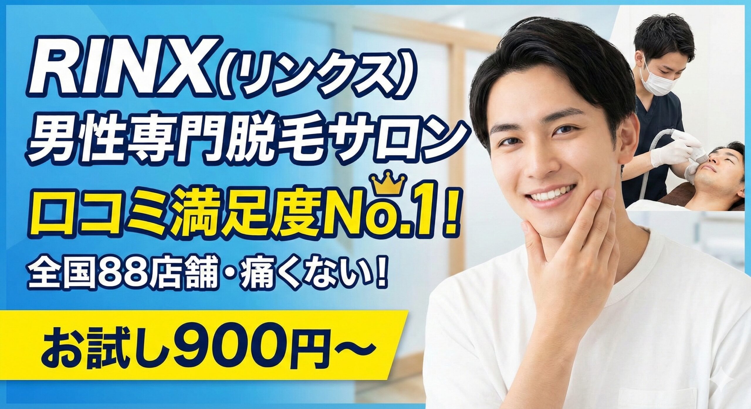 RINX(リンクス)は、創業17年・733万件以上の施術実績を持つ、日本最大級の男性専門脱毛サロンです。