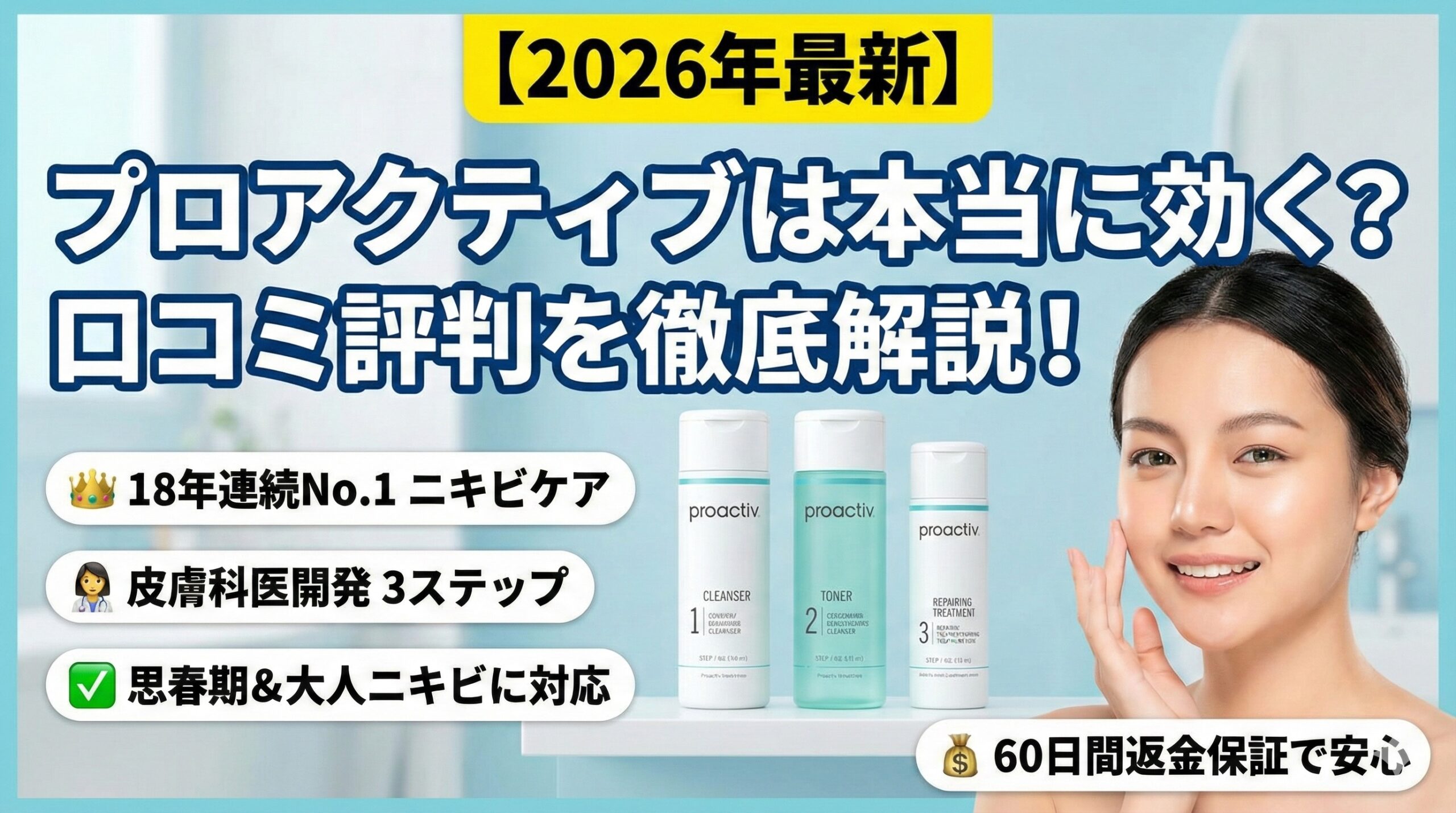 口コミでは「思春期ニキビといえばプロアクティブ」という声が多い一方、大人ニキビにも効果を実感する方が多数。繰り返すあごニキビが改善したという声もあります。