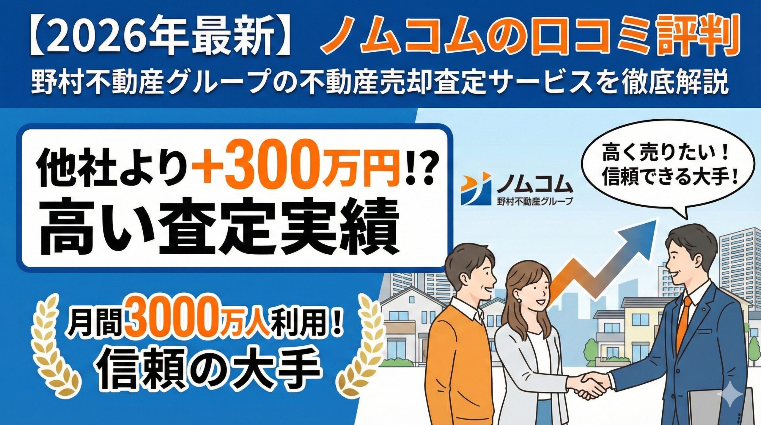 ノムコムは、野村不動産ソリューションズが運営する不動産情報サイトです。無料の不動産査定サービスを提供しており、インターネット上で手軽に査定依頼ができます。