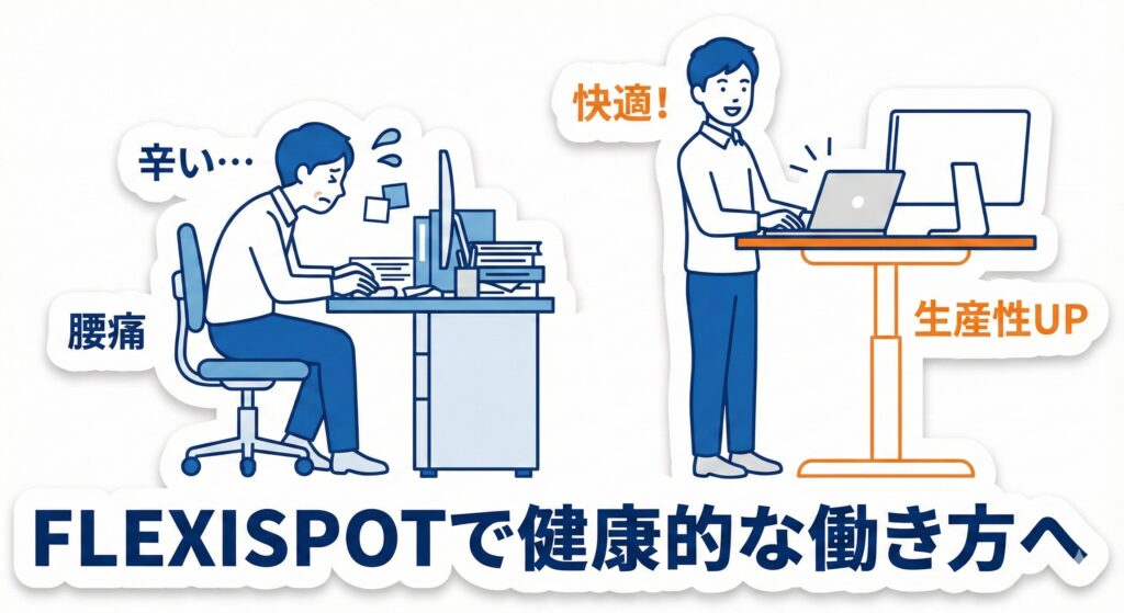 FlexiSpotは、あなたのこれからの「健康」と「時間(生産性)」を守る、最強のパートナーになります。