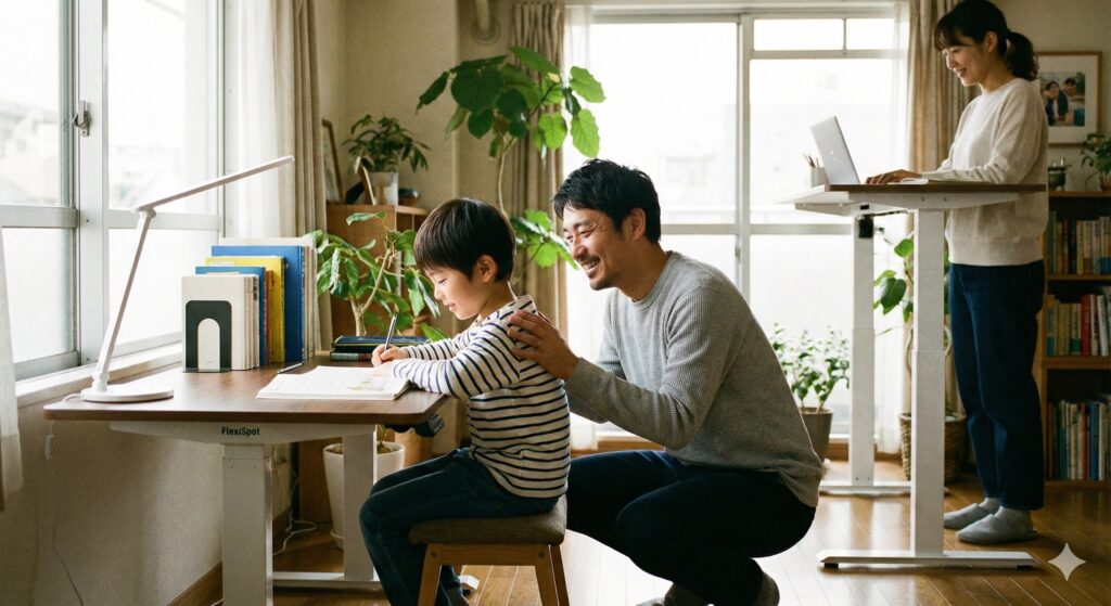FlexiSpotがあれば、「あ、腰が重くなってきたな」と感じた瞬間に立ち上がれます。姿勢を変えることで血流が良くなり、慢性的な痛みから解放されました。