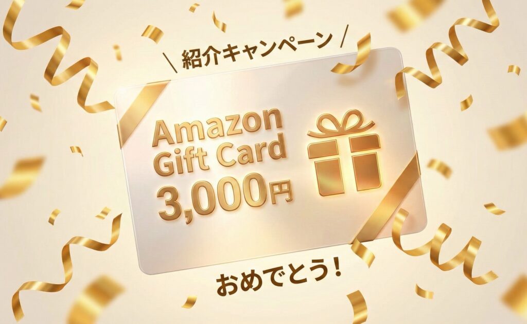 2025年現在、Amazonギフトカードなどがもらえるキャンペーンを実施している場合があります。条件(紹介コードの入力など)があるため、必ず公式サイトのキャンペーンページを確認してください。
