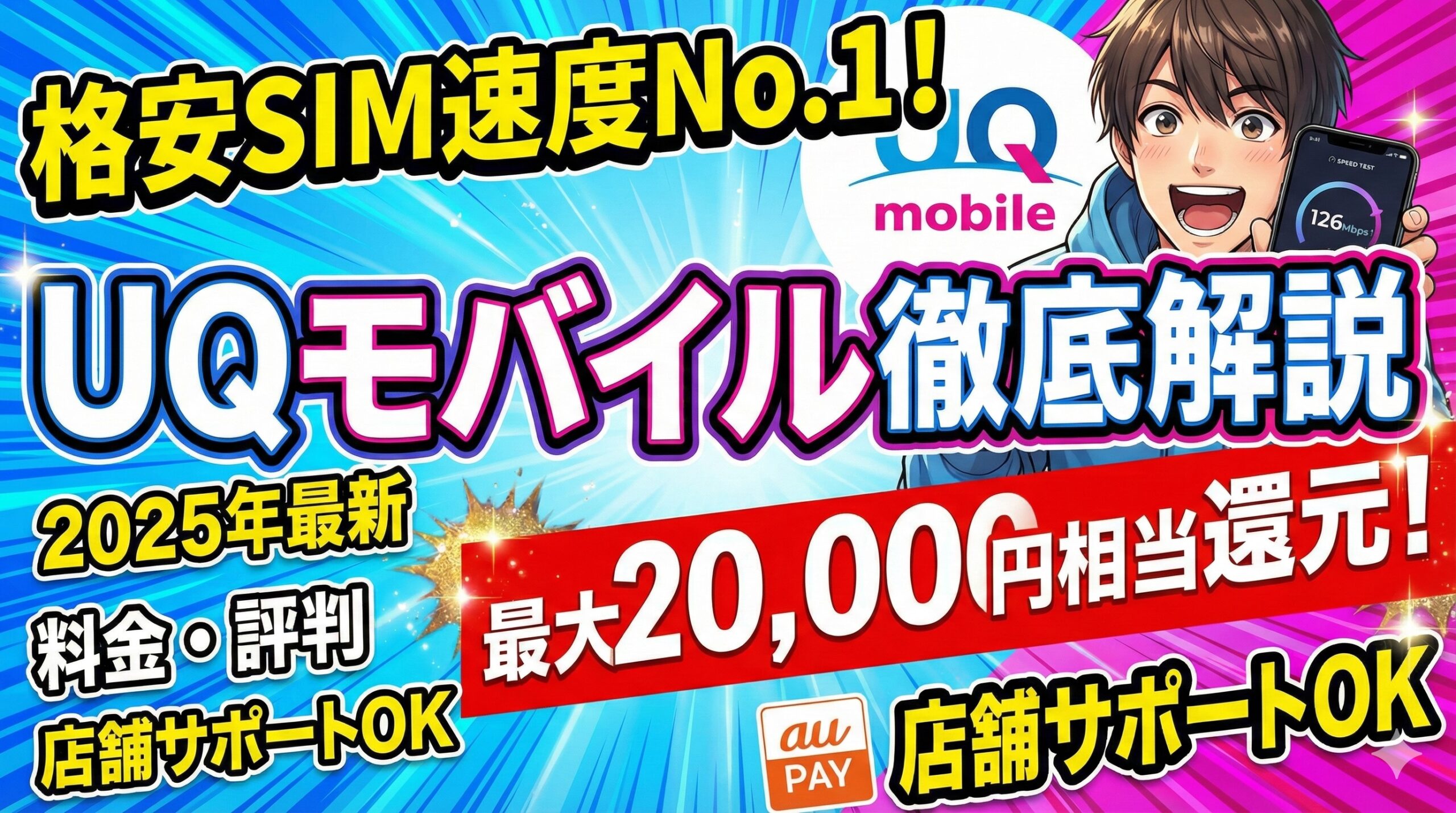 実は、auのサブブランドUQモバイルなら、格安SIM業界トップクラスの通信速度と、全国の店舗でのサポートを両立しながら、大手キャリアより大幅に安い料金で利用できるんです。今なら他社からの乗り換えで最大20,000円相当のau PAY残高還元も実施中です。