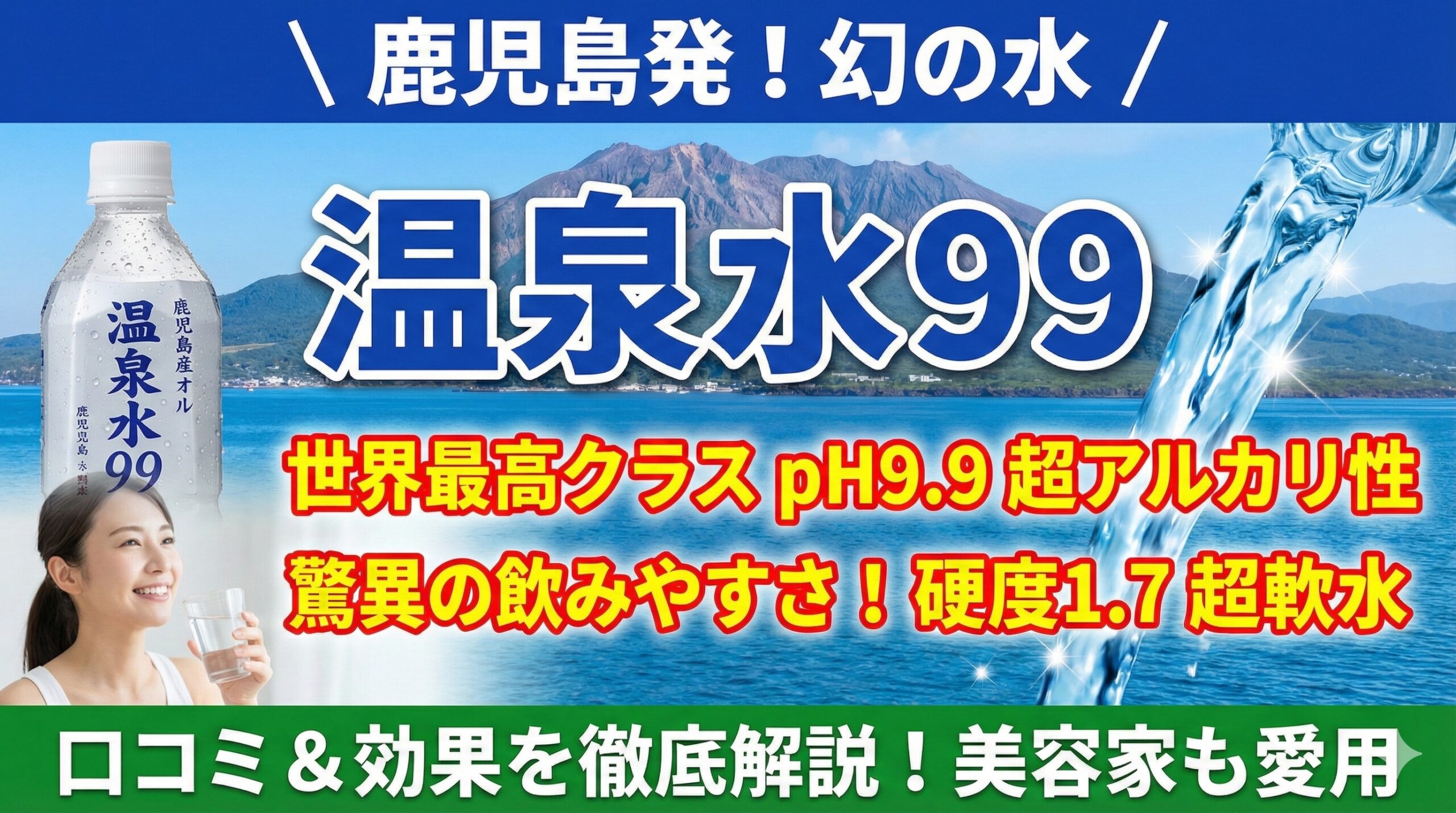 実は、温泉水99は鹿児島県垂水市の地下750mから湧き出る天然アルカリイオン水で、pH9.9という世界最高クラスのアルカリ度と硬度1.7の超軟水が特徴。美容家やモデルにも愛飲者が多く、「幻の水」として注目を集めています。