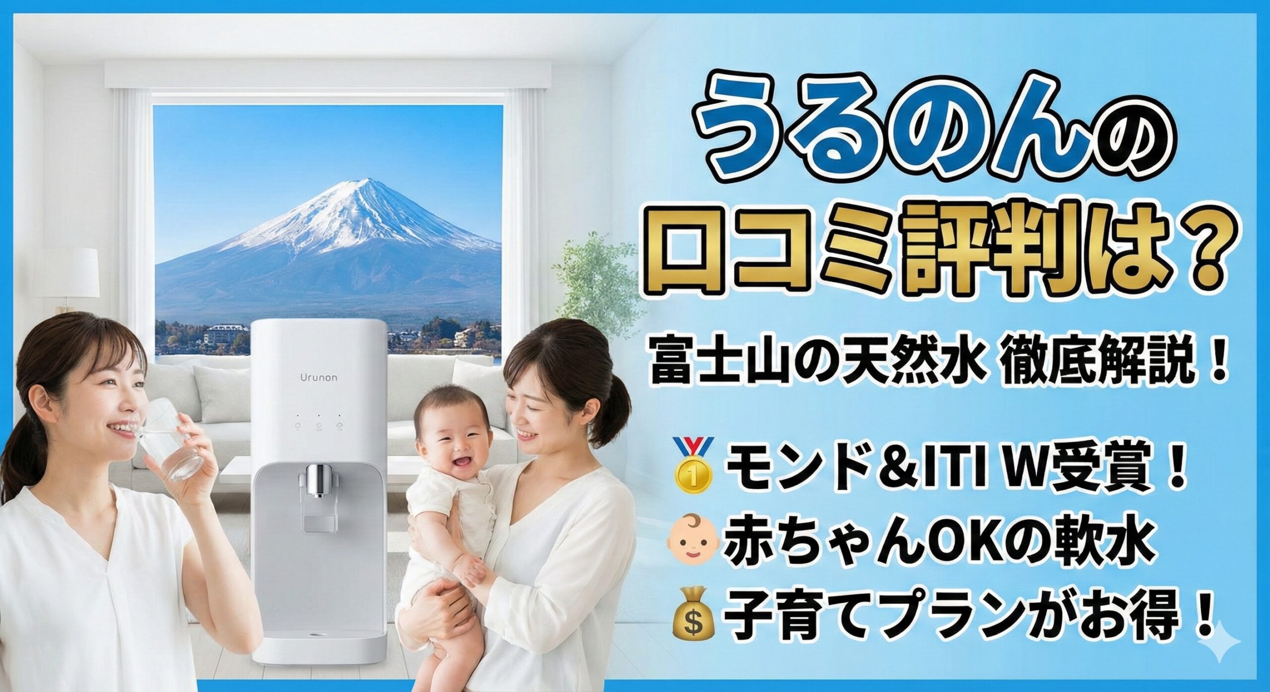 おいしい天然水を自宅で楽しみたい方、赤ちゃんのいるご家庭にうるのんはおすすめです。