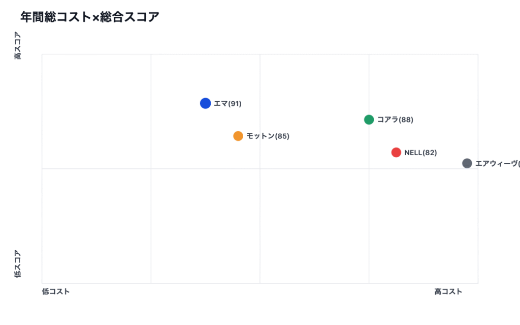 - 総合バランス: エマスリープ(価格×技術×保証)