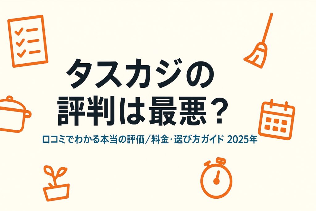 しかし、その一方で「評判が最悪」「トラブルが多い」といったネガティブな声も…。そこでこの記事では、数々の家事代行サービスをリサーチしてきた私が、タスカジのサービス内容から料金体系、そして利用者のリアルな口コミ・評判までを徹底的に調査。そのメリット・デメリットを忖度なしで解説し、「最悪」という噂の真相に迫ります。