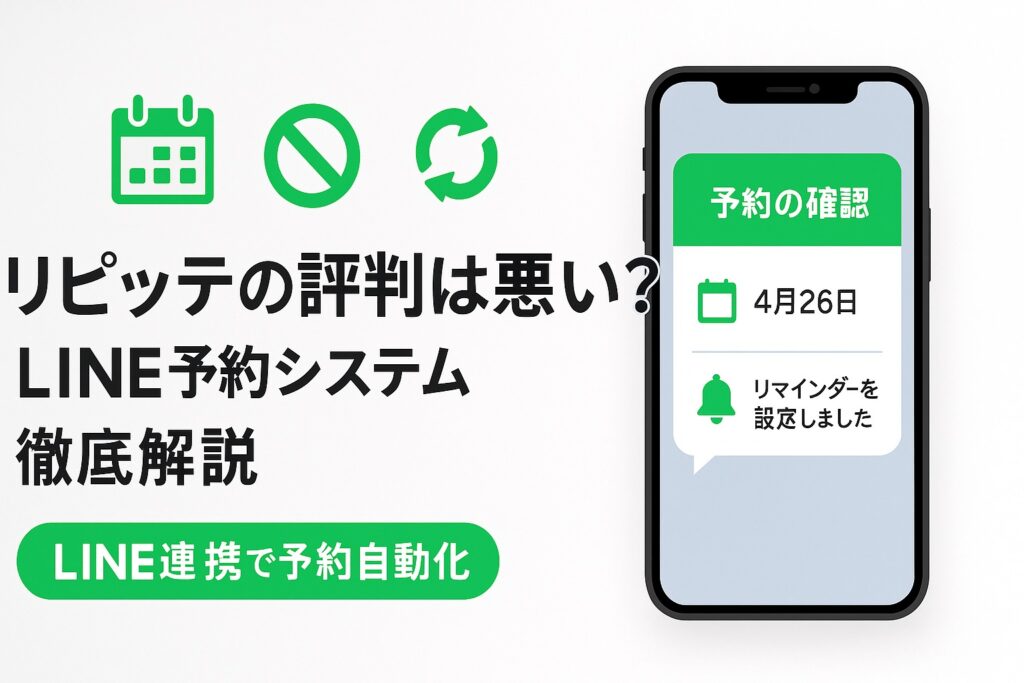 その夢のような仕組みを実現するのが、LINE公式アカウント連携型の予約システム「リピッテ(Repitte)」です。お客様が普段使っているLINEアプリから24時間いつでも予約ができ、面倒なリマインドや来店後のお礼メッセージまで自動化。多くの店舗で「ドタキャンが90%以上削減」「予約の電話がほぼゼロになった」という驚きの成果を上げています。